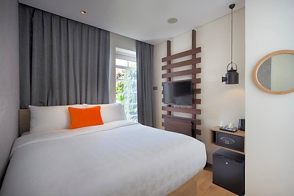 Premier Room with Outdoor Jacuzzi is 237 square feet and includes a queen-size bed 150-154 width plus desk and bathrobes.